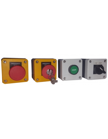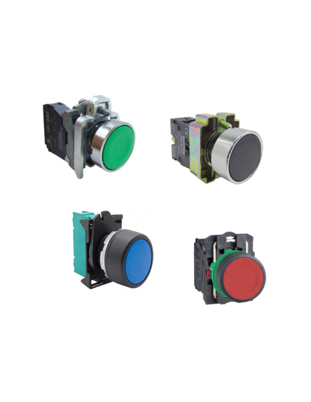 Hier finden Sie elektrische Notfalldrucktasten in verschiedenen Farben, Kunststoff oder Metall, leuchtende Piloten mit hoher Helligkeit und Leistung, Selektoren, verschiedene Boxen für Drucktasten und anderes Zubehör, Drucktasten und Anti-Vandalismus-Licht.