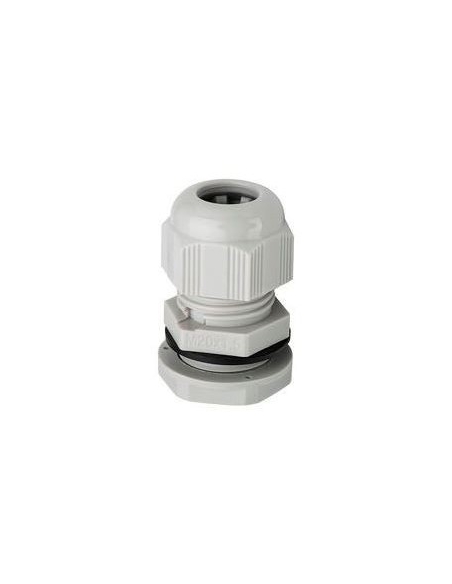 Prensaestopas de poliamida (Nylon) rosca M20, SIN tuerca incluida. Grado de protección IP-68. Color: Negro (RAL9005). Para cables y mangueras eléctricas de diámetros entre 10 y 14mm.