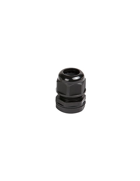 Prensaestopas de poliamida (Nylon) rosca M25, SIN tuerca incluida. Grado de protección IP-68. Color: Negro (RAL9005). Para cables y mangueras eléctricas de diámetros entre 13 y 18mm.