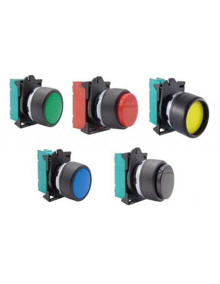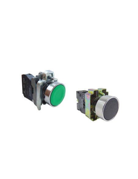 Pulsador eléctrico industrial de color verde con inscripción "START", con un contacto abierto (NO). El pulsador eléctrico permite ser montado sobre taladros pasantes de 22mm. El uso principal del pulsador eléctrico es el montaje sobre paneles eléctricos de mando de maquinaria y sobre cajas de mando eléctricas en...